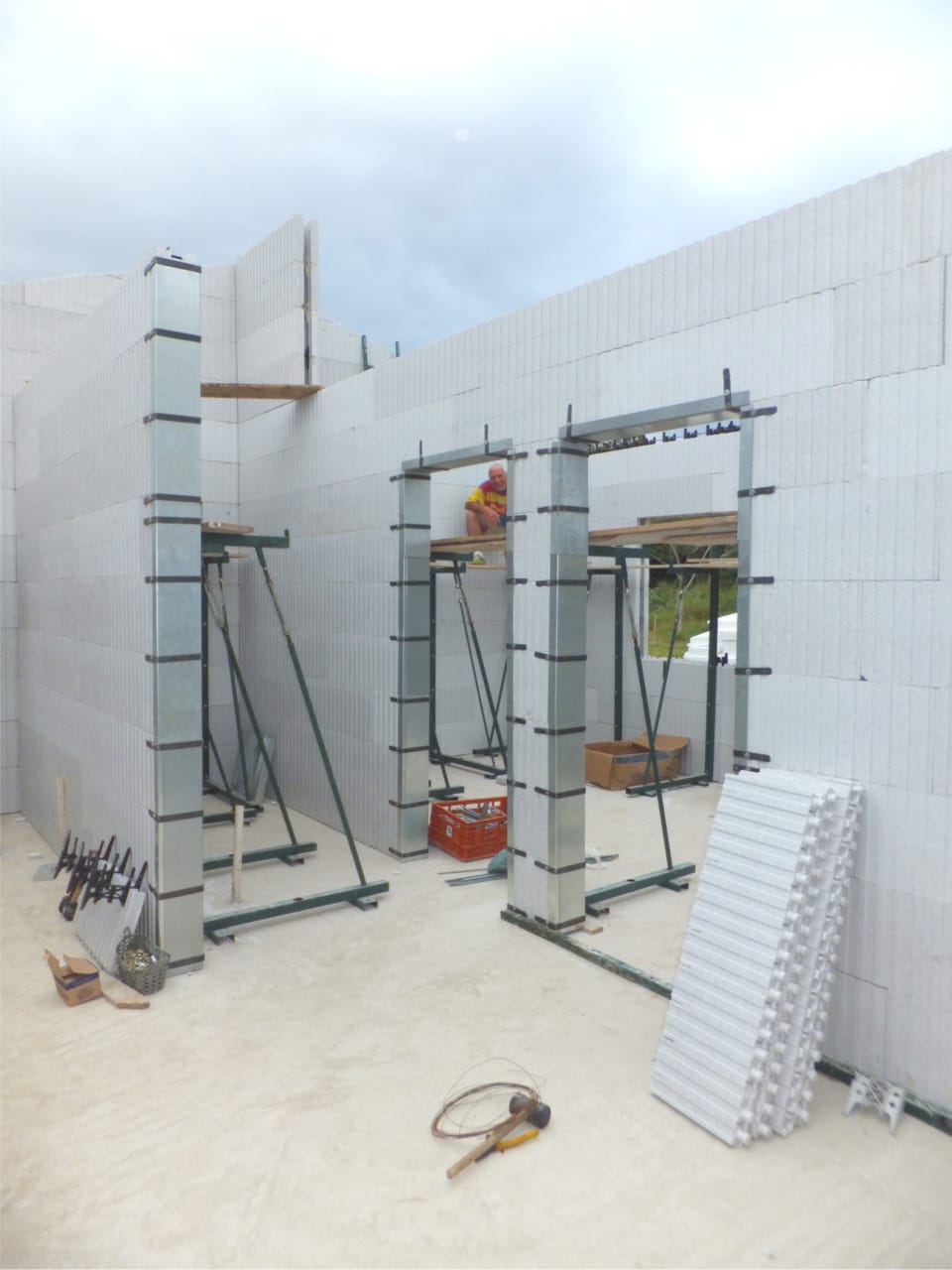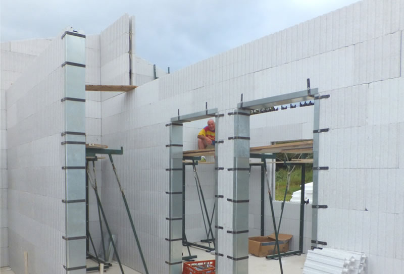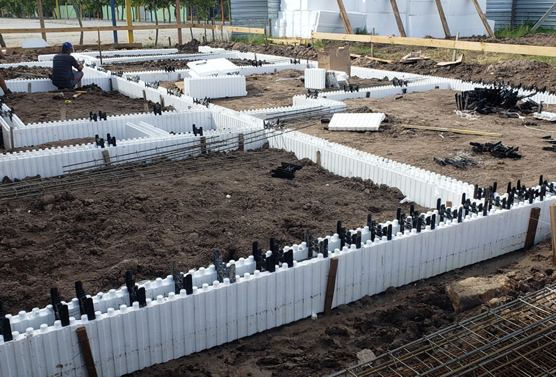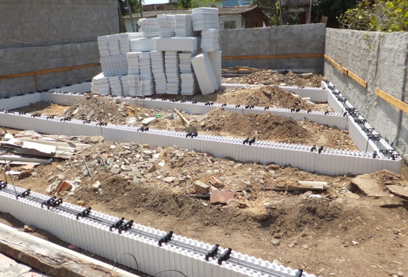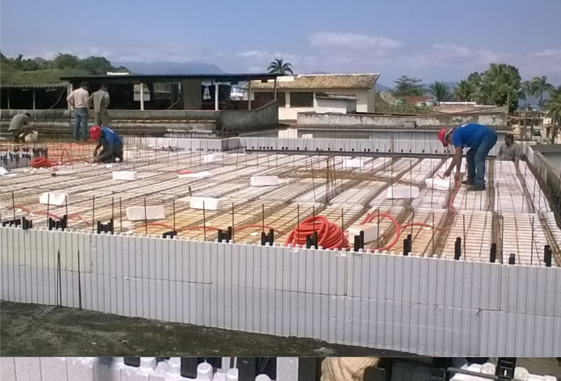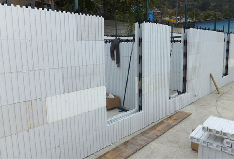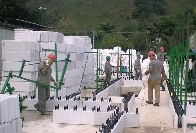 As placas são montadas lado a lado e unidas com espaçadores plásticos para colocação das ferragens da obra. Após a montagem, as paredes e eventuais lajes são preenchidas com concreto manual ou bombeado. A operação resulta num conjunto estrutural monolítico, sólido e garantido em concreto armado, substituindo a estrutura e a vedação de uma só vez. A fabricação do isopor/EPS é realizada em conformidade com as normas ISO 9002 e possui tecnologia italiana e alemã no processo de expansão do ICF.Além disso, os produtos em EPS, recebem um retardante classe F anti-chama. O e resultado é um produto sem impurezas e com 50 anos de garantia.